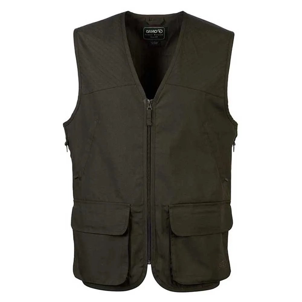 Hunting vest with game pocket, front pockets fasten with Velcro for an easy cartridge extraction and chest pockets with zipper.