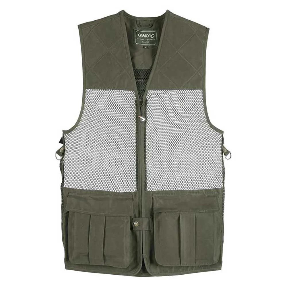 Versatile hunting vest with large area in open mesh fabric, perfect for warm environment.
