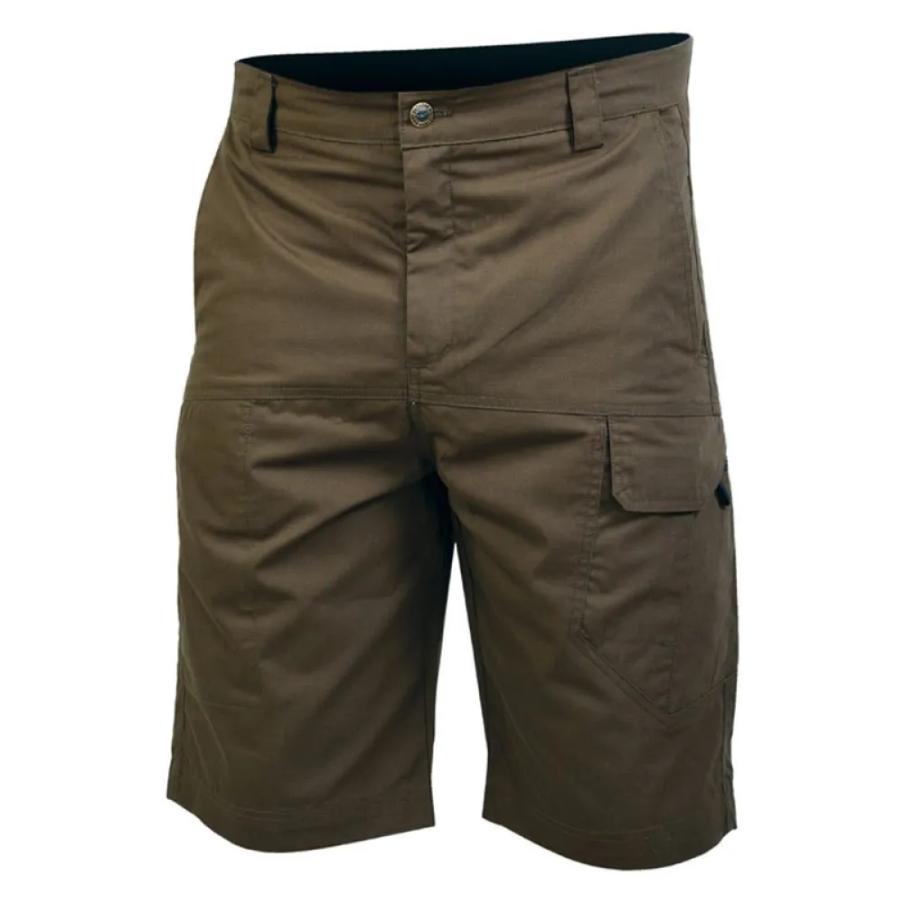 Cotton feeling light shorts for hunting and outdoor. Rip stop water-repelent outshell. Comfort and durability for dry weather hunting conditions. 8-pocket construction: 2 bias pockets (one with micro-zippered internal pocket), 1 knife pocket, 1 otseam zippered conceal pocket, 1 thigh cargo pocket plus phone pocket and 1 back zippered pocket.