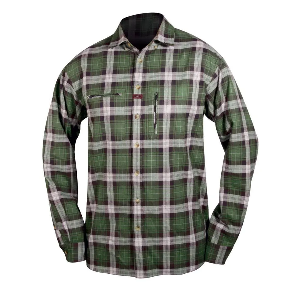 Midweight hunting shirt constructed in 100% hi-end compact cotton fl annel. Two zippered chest pockets.
