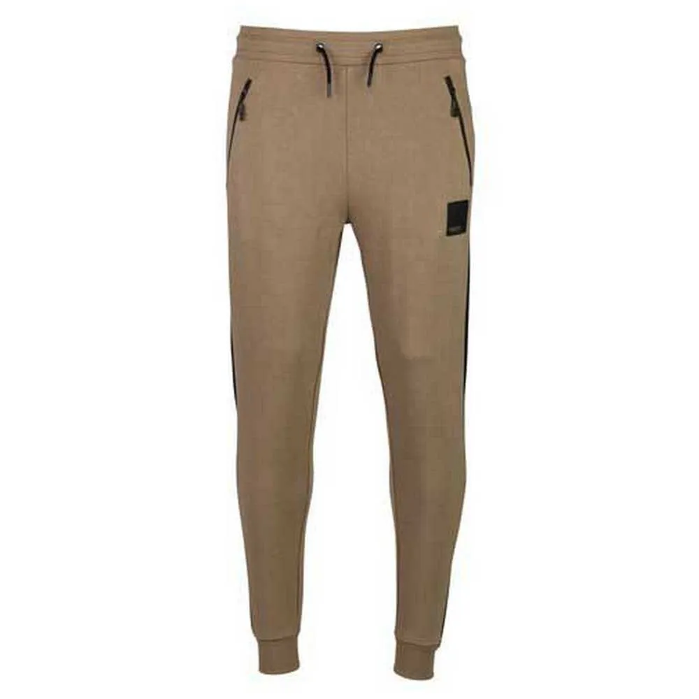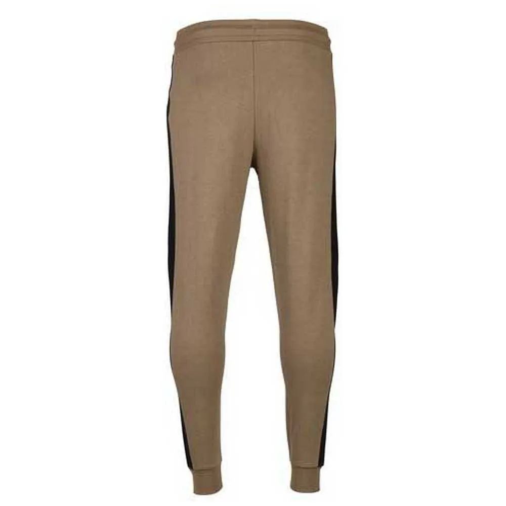 Heavier weight poly cotton joggers for all season wear with black contrast vertical trim, reverse zipped pockets and branded pullers, drawcord waist and elasticated ankle cuffs.