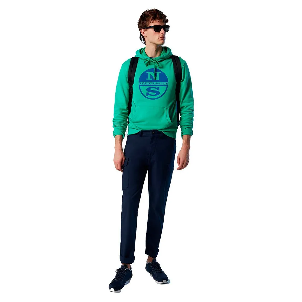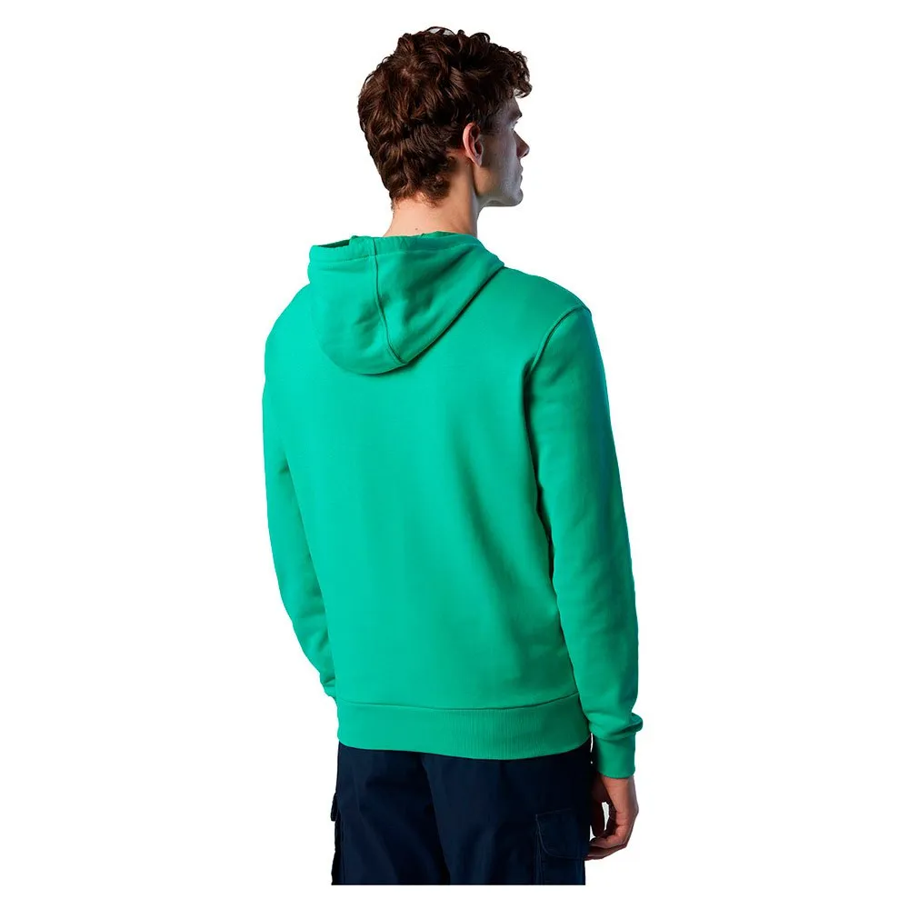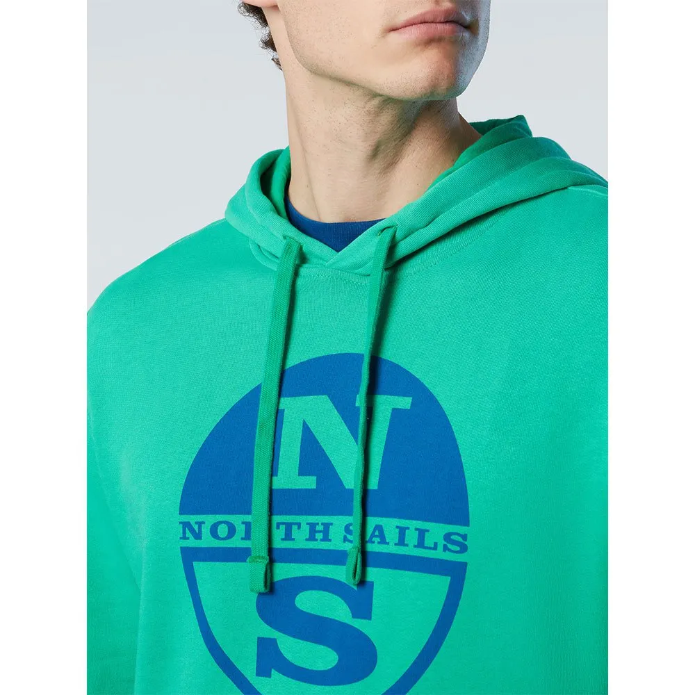 Hoodie sweatshirt with logo print in organic fleece and cotton jersey tape inner collar.