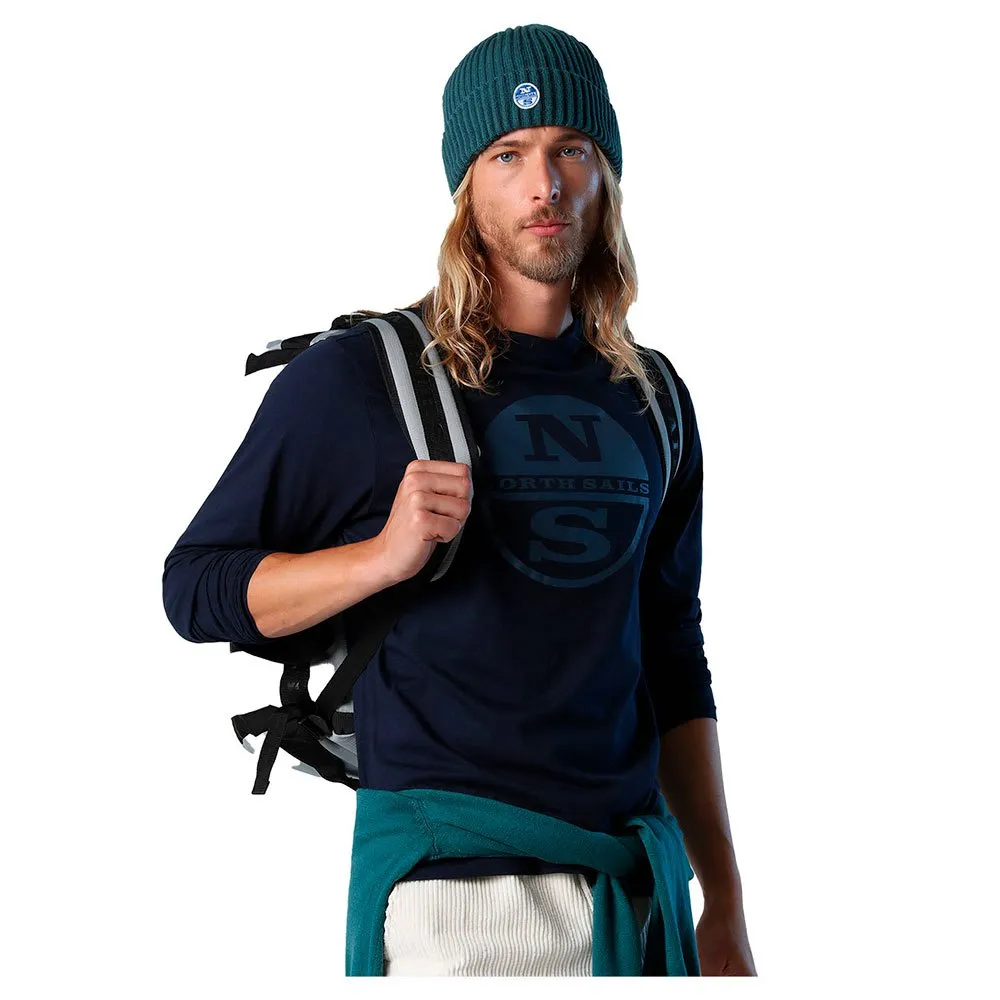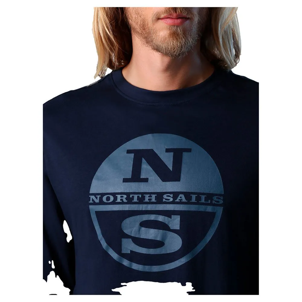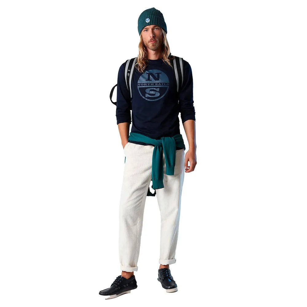 Organic jersey T-shirt. Crew neck, long sleeves and maxi North Sails logo print on the front. Stand out with style. This T-shirt is a North Sails classic and a must-have addition to your everyday casual wardrobe. Its relaxed-fit profile sports a crew neck, long sleeves and a maxi logo on the front. But what really sets it apart from the rest is its certified organic cotton jersey construction, manufactured in line with socially responsible and eco-friendly principles without the use of harmful substances.