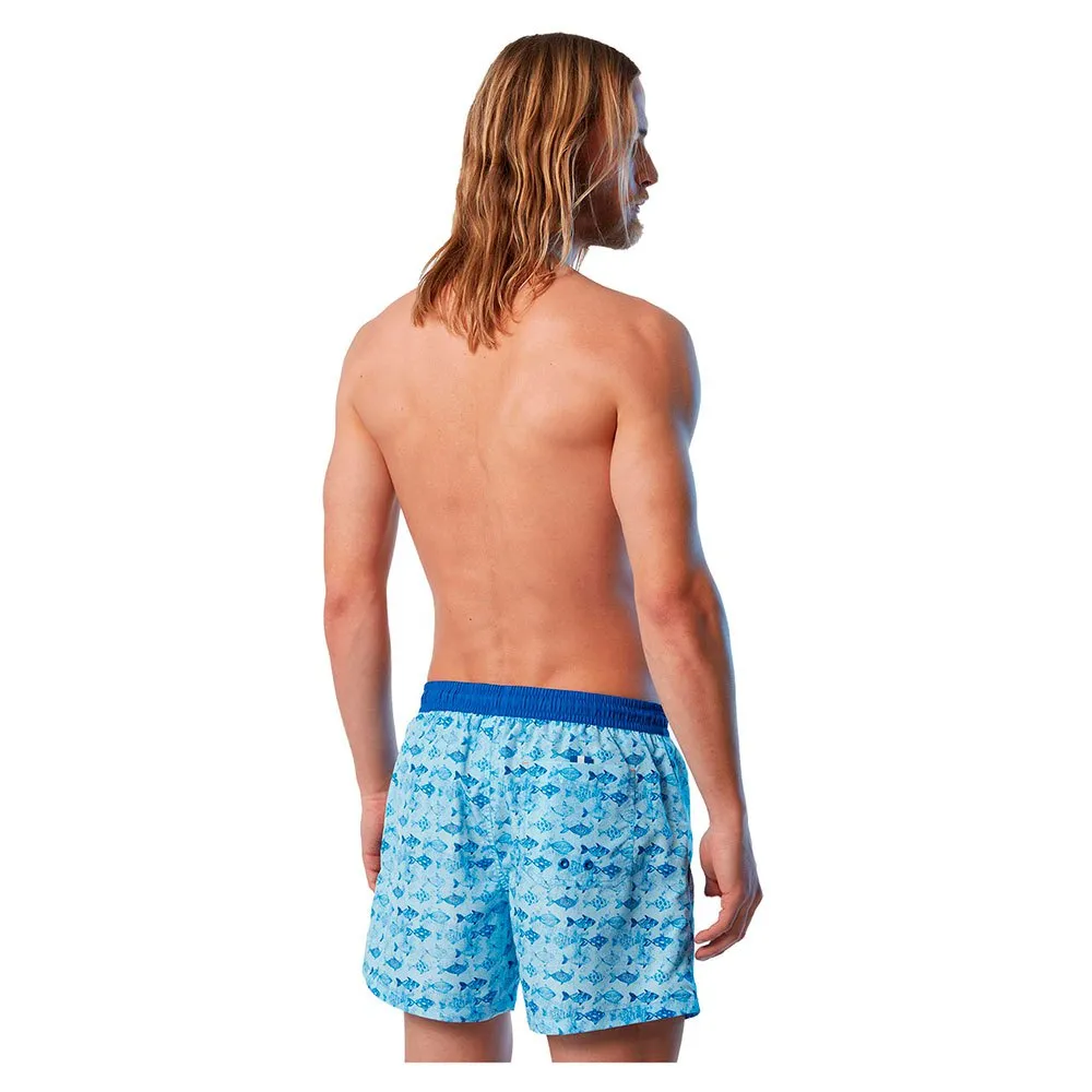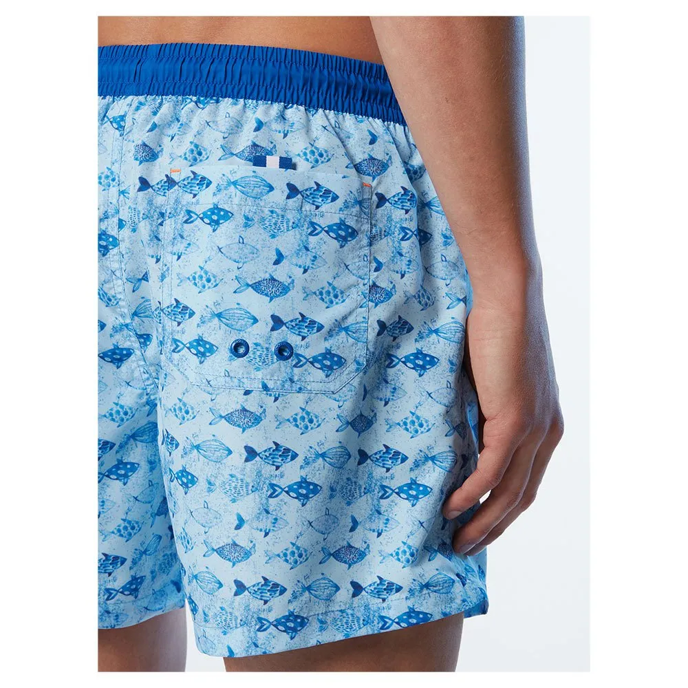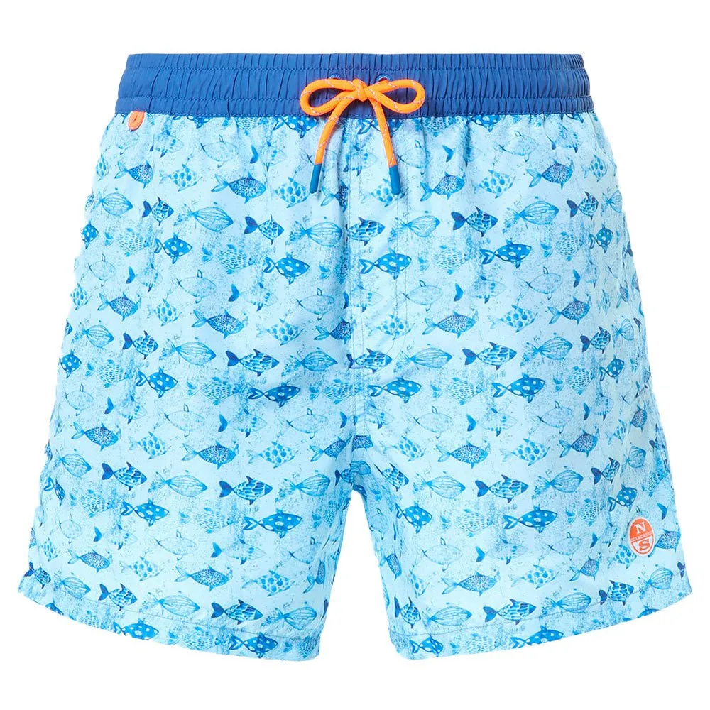 Swim shorts with all over prints inspired by the sea and water animals. Neon colored patch and drawstring. solid color inside waistband and inner brief in mesh.