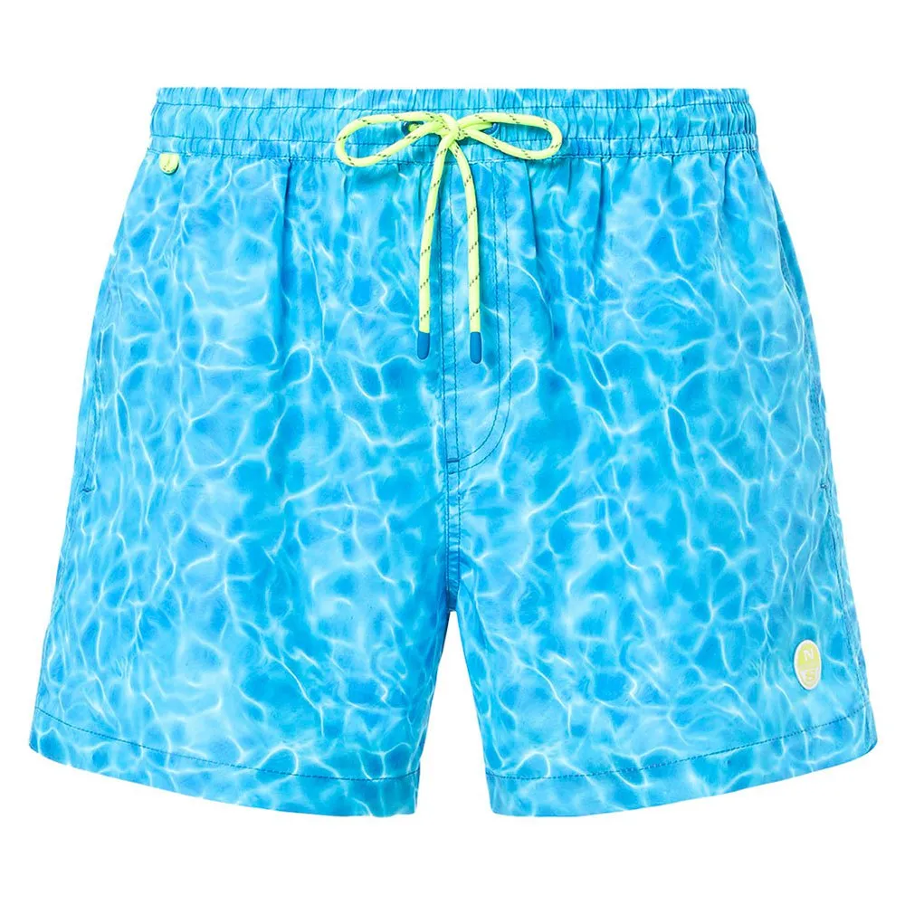 Swim shorts with all over prints inspired by the sea and water animals. Neon colored patch and drawstring. solid color inside waistband and inner brief in mesh.