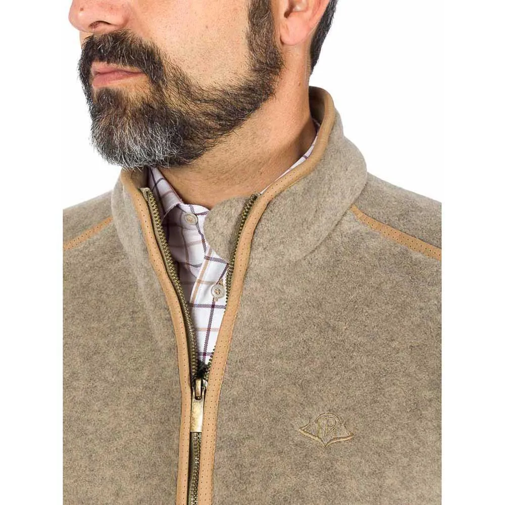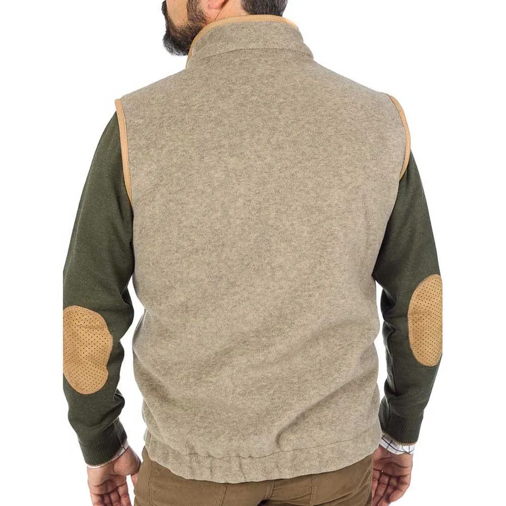 Vest made of Polartec 300 fabric. Slim cut with front seams. Rubber at the bottom of the back to adjust. Camel color embroidery on the front. Zipper bias details, shoulder yoke and armholes. Metal zippers on the front and pockets, interior pockets in Suede.