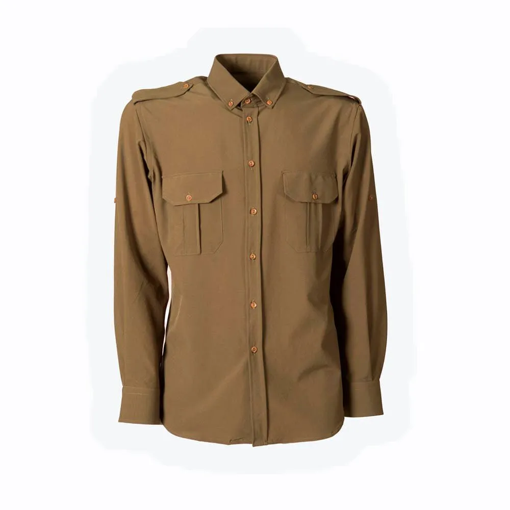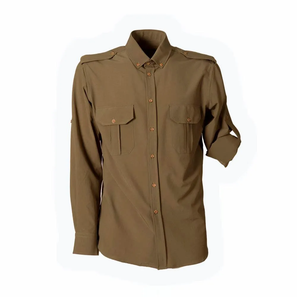 Green safari man shirt, 100% cotton bi-lastic fabric.